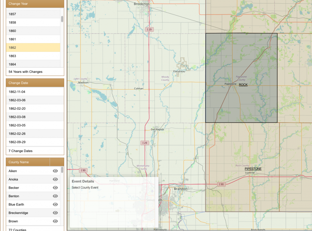 Prior to Minnesota State law 1862, spec., ch 30, secs 1-2/pp. 269-270; Rock County in AniMap shows correctly where Rock County existed before the law was enacted.